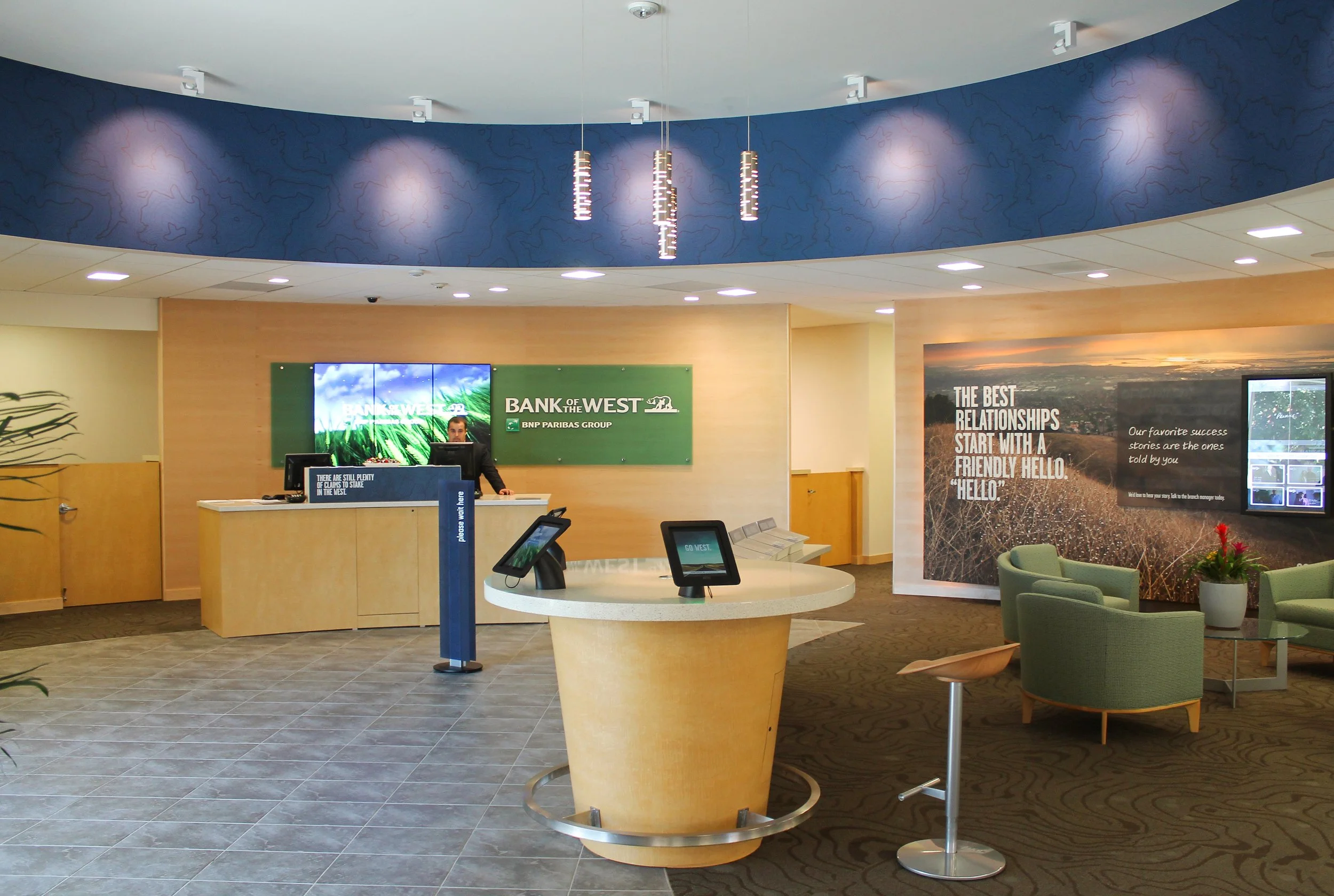 The Bank of the West – Santa Monica project is a 3,400-square-foot interior tenant improvement designed as part of a company-wide rebranding initiative across all Wealth Management branches. Located in Santa Monica, California, the project reflects RACAIA’s longstanding collaboration with BNP Paribas/Bank of the West in delivering highly detailed corporate performance environments tailored to investment-focused clientele.